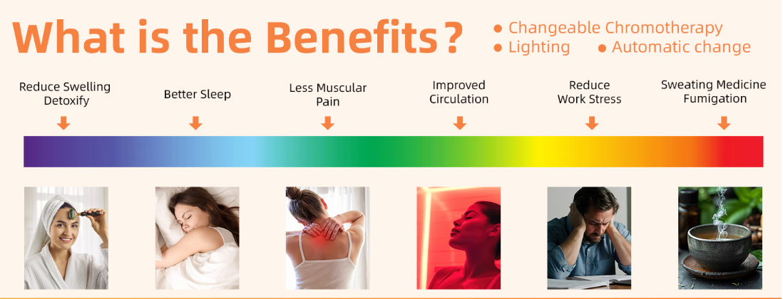【সুস্বাস্থ্য সুবিধা】 আমাদের ব্যক্তিগত সওনা ডিটক্সিফিকেশনকে উত্সাহ দেয়, রক্ত সঞ্চালনকে উন্নত করে এবং যৌথ এবং পেশী ব্যথা থেকে মুক্তি দেয়। ক্যালোরি জ্বলন্ত ছাড়াও, এটি ত্বকের স্বর বাড়ায় এবং আপনার মঙ্গল নিশ্চিত করে একটি উষ্ণ, শান্ত এবং শান্ত অভিজ্ঞতা সরবরাহ করে।
