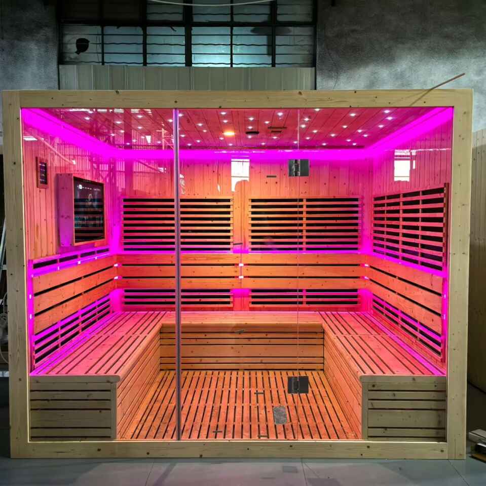 5-10 জন ব্যবহারকারীর জন্য প্রকৌশলী, এই sauna রুমটি পারিবারিক সমাবেশ, বন্ধুদের মিলনমেলা বা স্পা এবং সুস্থতা কেন্দ্রের মতো ছোট বাণিজ্যিক স্থানগুলির জন্য আদর্শ। উচ্চ-মানের সানা কাঠ দিয়ে নির্মিত, এটি আপনার স্থানটিতে একটি প্রাকৃতিক, উষ্ণ নান্দনিকতা আনার সময় স্থায়িত্ব নিশ্চিত করে।