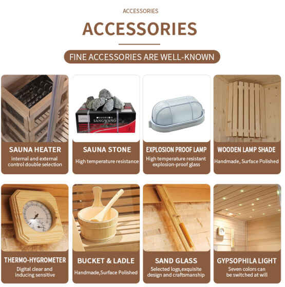 দবাইরের কাচের দরজা আউটডোর স্টিমিং রুম8টি ক্যাটাগরির মূল আনুষাঙ্গিক দিয়ে সজ্জিত, যা sauna-এর সম্পূর্ণ-প্রক্রিয়ার প্রয়োজনীয়তাগুলিকে কভার করে, গুণমানকে বিশদভাবে দেখায়: